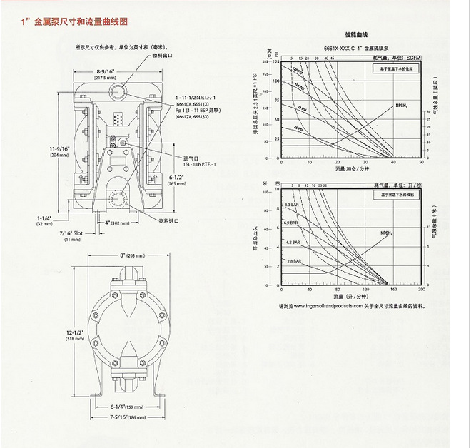 1.5寸英格索蘭氣動隔膜泵尺寸圖